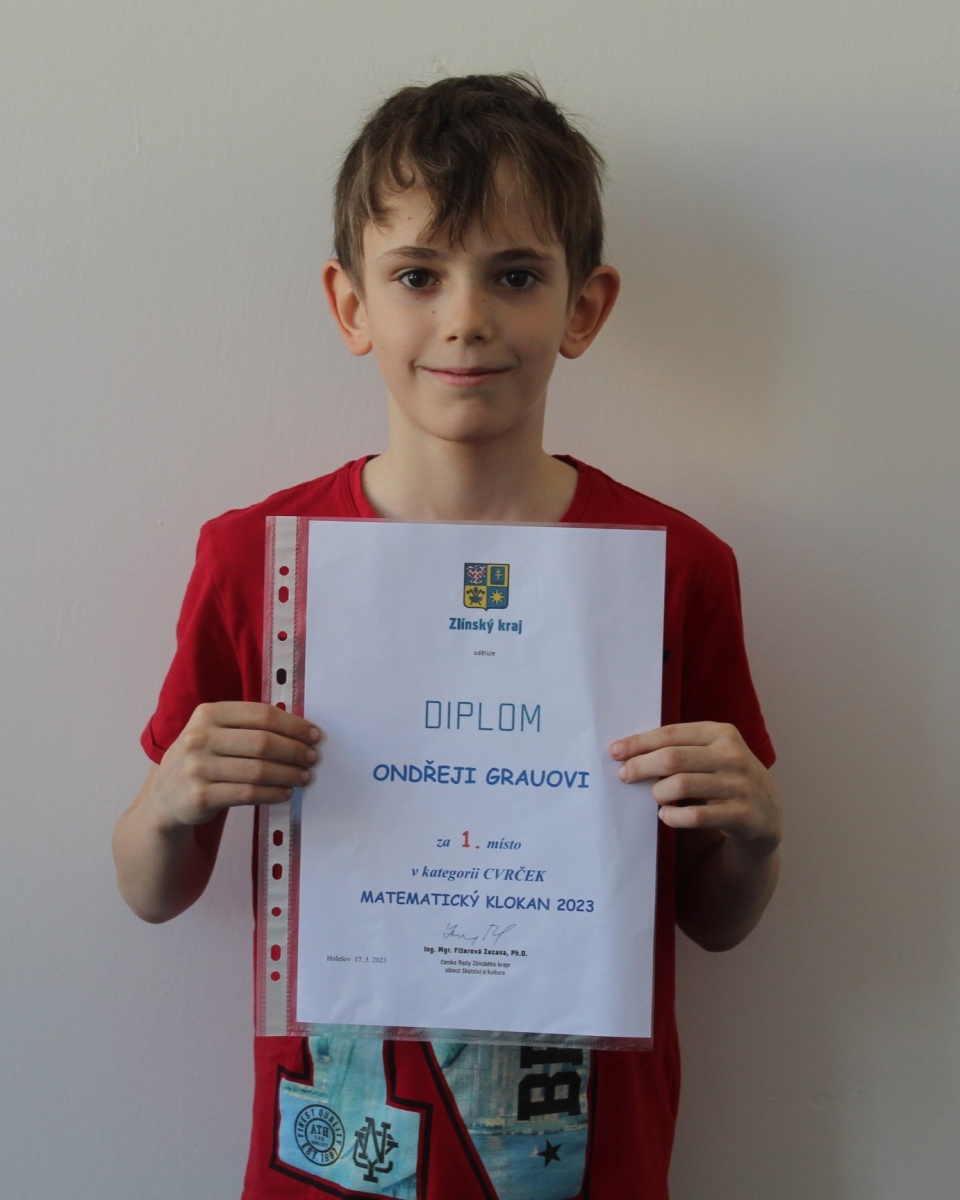 Ondra Grau zvítězil v soutěži Matematický klokan ve Zlínském kraji. Posíláme velkou gratulaci!!!